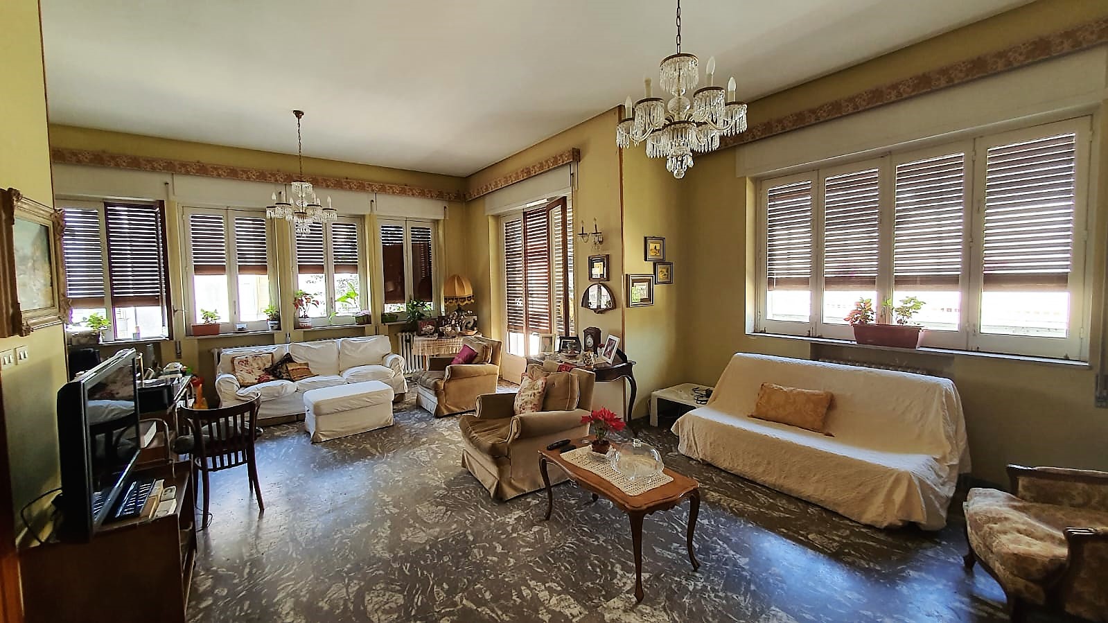 -Piano primo sup. coperta mq 216 con grandi aperture e verande su tre lati di mq 35 , data l’esposizione e la dimensione è possibile ricavarne diverse abitazioni.