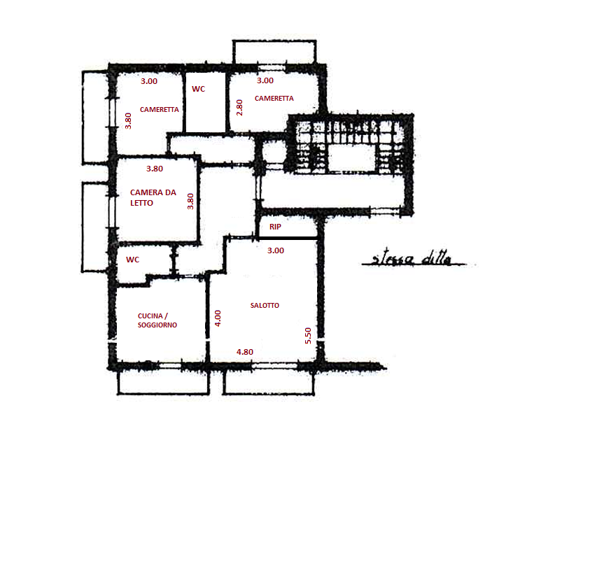 L’immobile con una superficie di 130 mq circa, è composto da: ingresso, cucina/soggiorno, salotto, 3 camere da letto, 2 bagni e un ripostiglio.