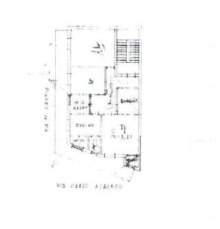 -Appartamento piano primo mq 93 sup. catastale, composto da: camera matrimoniale, cameretta, cucina, soggiorno, bagno e lavanderia.